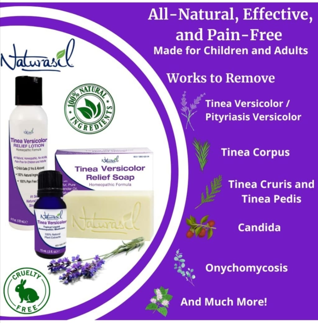 Naturasil, a natural health and wellness company, offers a 10% sulfur soap that can be used daily to help cleanse and eliminate unwanted spots associated with tinea versicolor. The soap is made with natural ingredients and is gentle on the skin. It is recommended to lather with Naturasil Tinea Versicolor Soap, allowing it to sit on the skin for a few minutes, then rinse off. It is important to dry off completely before applying either the Naturasil Tinea Versicolor Liquid Treatment or the Naturasil Tinea Versicolor Relief Lotion for best results.