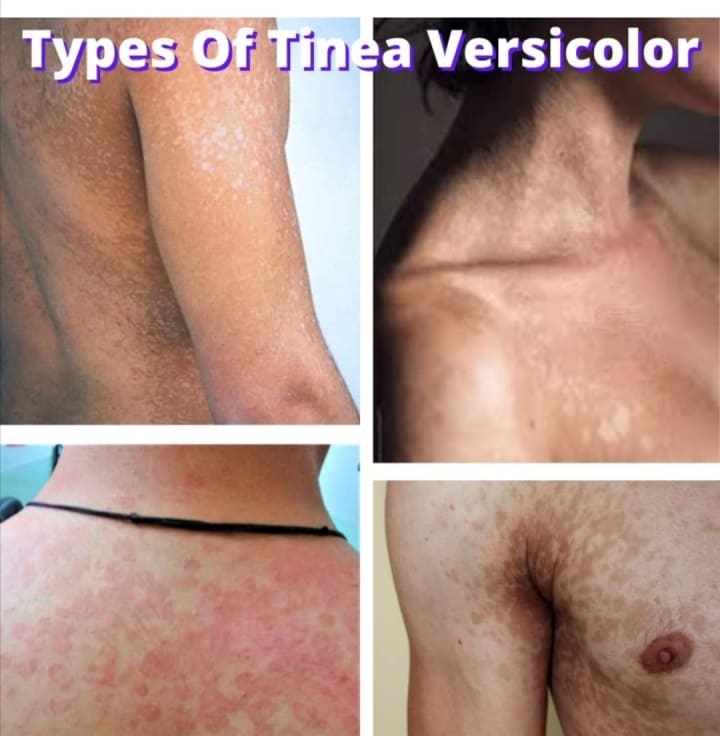 Tinea versicolor is a fungal infection of the skin that causes patches of discoloration on the body. The types of tinea versicolor include: