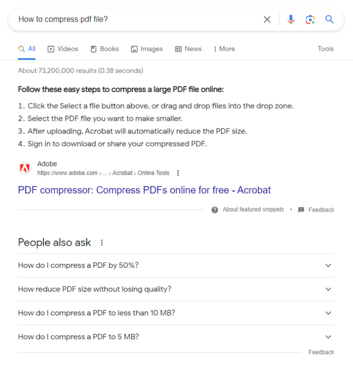 A section with specific concise answers will simplify the search and increase the chances of ranking higher in search results. Additionally, there's an opportunity to appear in Google's answer box, where a short text from your website and a link to it will be displayed.