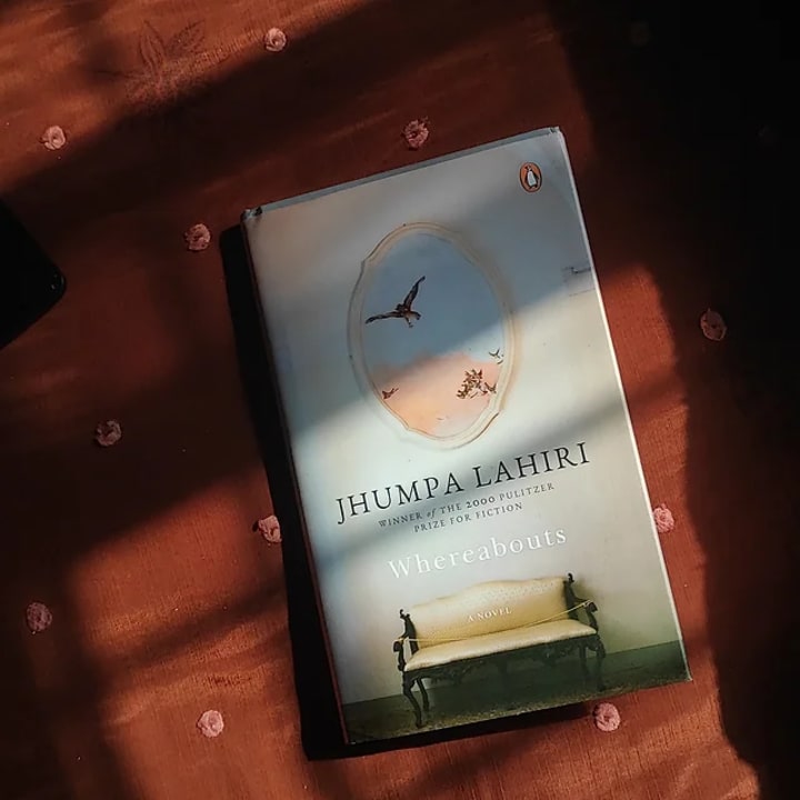 "Whereabouts" is a novel written by Jhumpa Lahiri, published in 2021. It is a story about an unnamed middle-aged woman who lives alone in an unnamed Italian city. The book is divided into short chapters that are more like vignettes, each one capturing a moment in the protagonist's life.