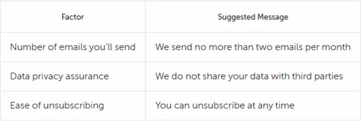 Explain the subscription terms and what will happen next. It’s enough to add a short note near the CTA and also provide a link to the full data usage policy.