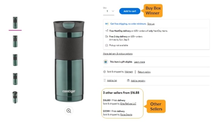 On marketplaces like Walmart when multiple sellers or more than one seller sells the same product they share the same listing and compete for the win to ‘Add to Cart’ button. This is the most important button as this is where most shoppers make their purchasing decision. The seller who wins the ‘Add to Cart’ is the winner of the buy box. However only one Walmart seller can win the buy box, the buy box winner is the default seller whose product goes into the ‘Add to Cart’.