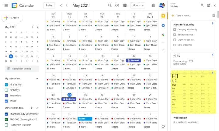 Giving time to your family and friends as much as you do to work and planning for this is extremely easy in google calendar.