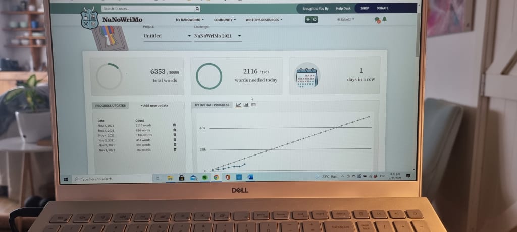 With over 2000 words today was my biggest writing day so far in NaNoWriMo. I set myself a small target of 750 words a day for the first week because I knew I needed to find my flow. I believe I've done that, and every time someone on Vocal likes a story I've written, it spurs me on to chase my dreams and finish my novel. It now sits at just over 17,000 words, and I am so bloody proud of myself. I truly believe I can finish my first draft in the next 23 days. Writing has always been a lifeline for me. Something I turn to when I need to get things off my chest, but it is turning into something so much more. I cannot wait to see where my new-found belief and creativity takes me.