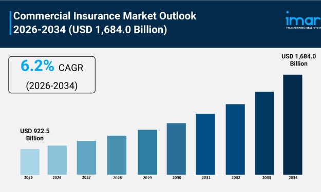 Technology partnerships fundamentally transform commercial insurance operations through strategic investments and innovations. According to IMARC Group's latest research publication, the global commercial insurance market size reached USD 922.5 Billion in 2025. Looking forward, IMARC Group expects the market to reach USD 1,684.0 Billion by 2034, exhibiting a growth rate (CAGR) of 6.2% during 2026-2034.