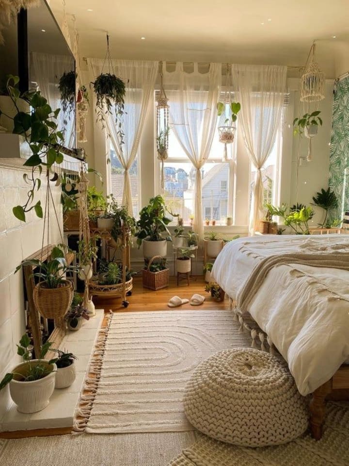 Hanging plants make an excellent bohemian element to any bohemian-themed space, and they’re an attractive and exciting way to create interest and depth. Make your plants and keep ones with individuality and a great design in your mind.