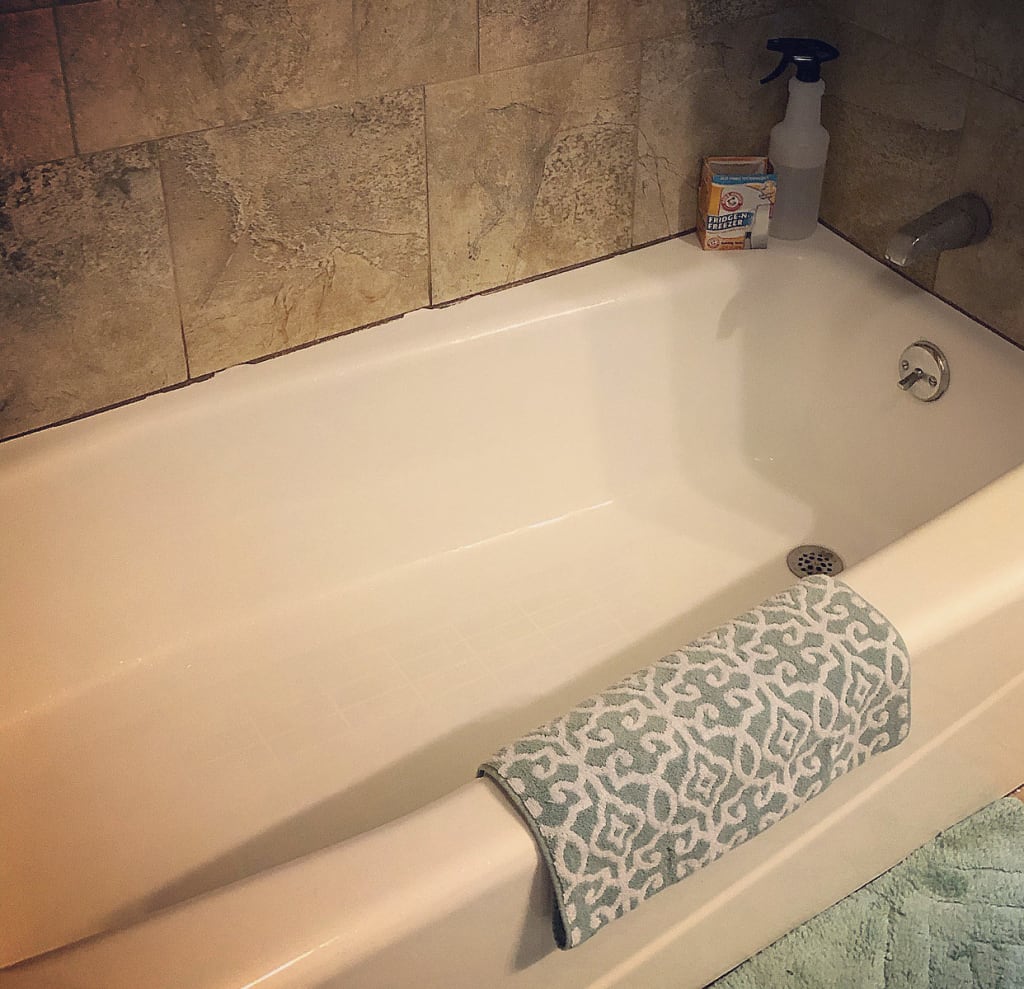 Pretty simple, right? That is all it took to get my bathroom sparkling clean! I am excited that I now have a nice clean tub, toilet, and sink. It's good to keep this area of the home clean, especially if you have little ones who bathe in the tub and potty train. Their little hands are all over the place.