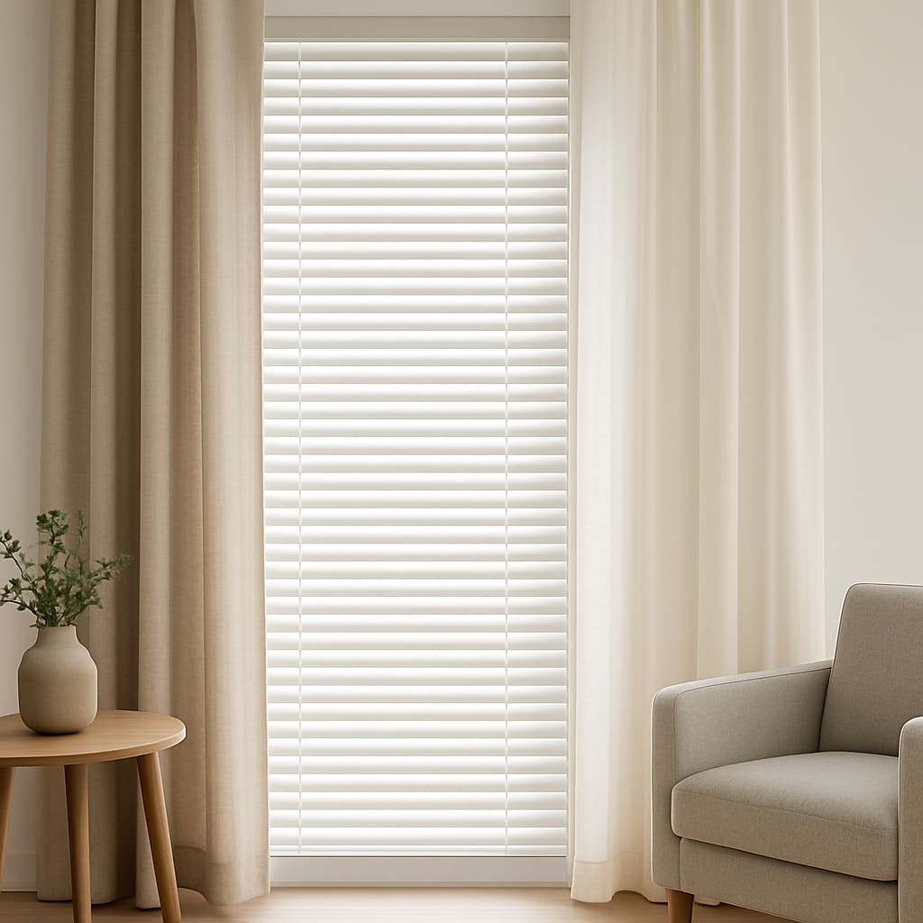 Venetian Blinds: Offer great light control and come in timber, aluminium, or PVC options.