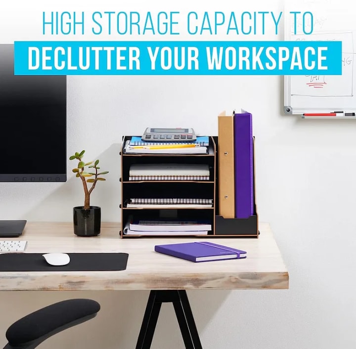 2.Storage Solutions! Consider adding storage solutions like desk drawers, shelves, or desktop file organizers to keep documents and supplies in order.