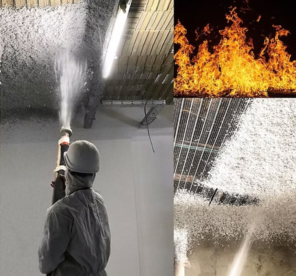 Fireproofing spray is a passive fire protection method applied to building materials such as steel, wood, and textiles to delay heat and flame spread. These sprays create a fire-resistant barrier that helps maintain the structural integrity of a building during a fire, giving occupants more time to evacuate and reducing damage.