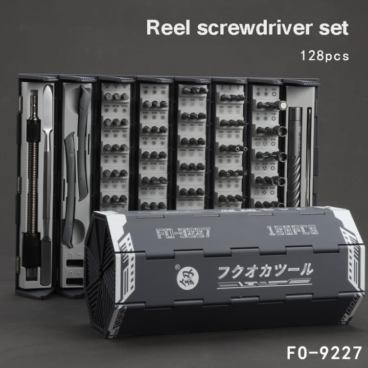 Overall, the "128 Pcs Screwdriver Set Reel Storage Box Five-pointed Star Shaped Bit Head Precision Phone Repair Tool Hand Tool Kit" is a must-have tool for anyone who needs to repair electronic devices. It offers a comprehensive range of tools in a compact and convenient package, making it an excellent investment for both professionals and DIY enthusiasts.]