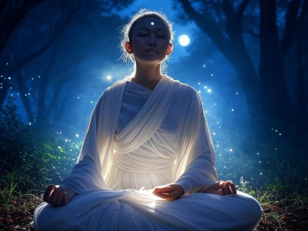 • Visualization: Imagine a glowing indigo light at your forehead, expanding with each breath.