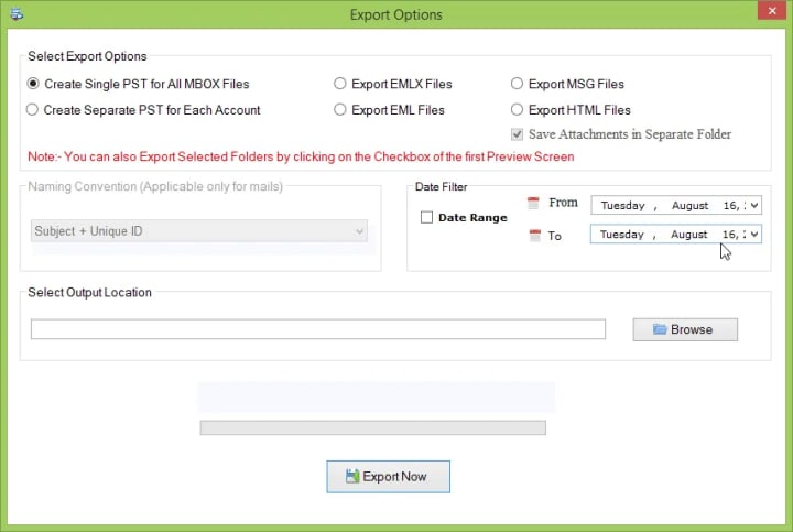 - Apply the necessary filters to the data in the MBOX file and click Next.