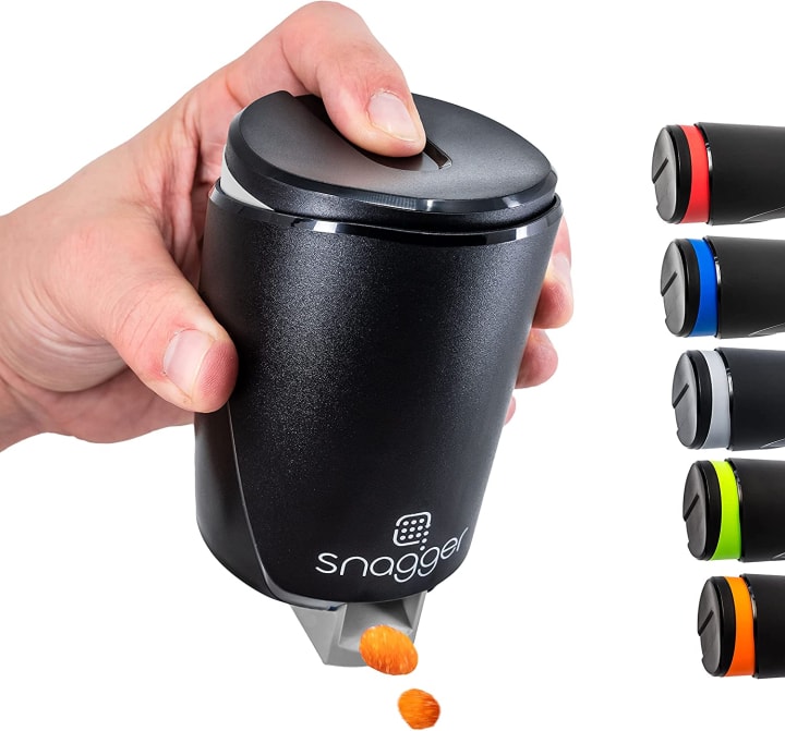 Introducing the Snagger - the ultimate snack dispenser for clean and easy snacking!