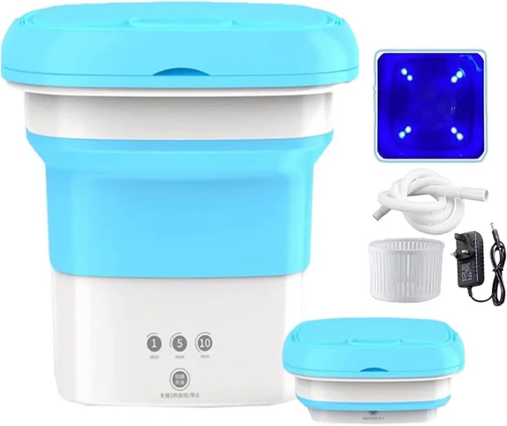 The portability of this washing machine is a game-changer. It can easily fit into a small corner of a room, a closet, or even a travel bag, making it an ideal solution for people living in apartments, RVs, or boats where conventional washing machines are not feasible.