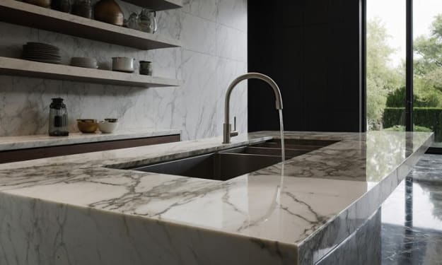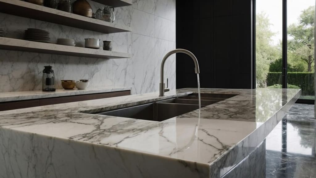 Design Balance: Let the benchtop’s natural veining be the star and use neutral-coloured textures on the splashback to avoid visual competition.