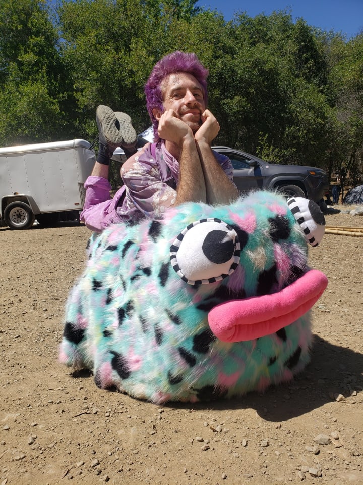 We played scientists studying the weasel and learning about it’s new features. The height of the experience was a birthing ceremony where Cheezle gave birth to Baby Cheezle, a baby version of the weasel that was a drivable car made out of an electric wheelchair. People absolutely lost their minds when I exploded out of the weasel (birthing sounds being blasted through speakers) flying through the crowd yelling for people to make way for Baby Cheezle!