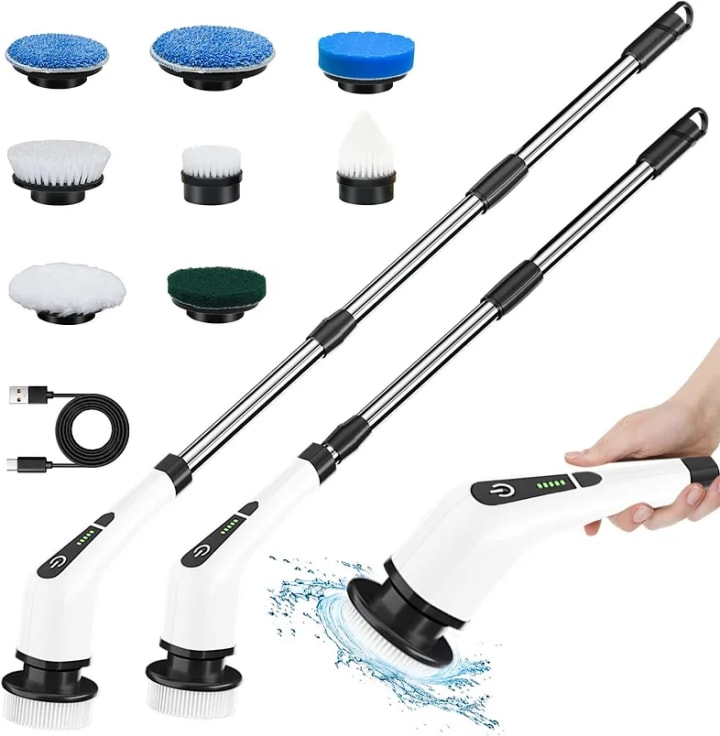 A cordless electric spin scrubber is a versatile cleaning device that features a rotating brush head powered by an electric motor. It is designed to tackle a wide range of cleaning tasks, from scrubbing tiles and grout in bathrooms to cleaning stovetops and sinks in the kitchen. The magic lies in its rotating brush head, which does the hard work for you, eliminating the need for vigorous scrubbing and reducing the strain on your wrists and arms.