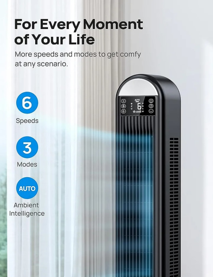 The smart tower fan offers multiple speed levels, allowing users to select the desired airflow intensity based on their preferences and room temperature. The oscillation feature enables the fan to distribute air evenly across the room, covering a larger area effectively.