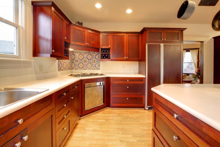 Are you wondering if the contrast will go with the décor of the kitchen or not? Well, in a traditional kitchen, you can beautifully incorporate the touch of contrast. So, how are you going to do that? Choose cherry wood kitchen cabinets. The color of cherry wood is dark reddish brown and comes with the natural texture of wood. The most unique thing about this type of kitchen cabinet is that the color will never fade. In fact, cherry wood becomes darker with time. So, if you are using the contrast of cherry wood with beige walls and a white marble countertop, you are on the right track. This contrast will increase the warmth of your kitchen while ensuring the perfect durability of the cabinets.