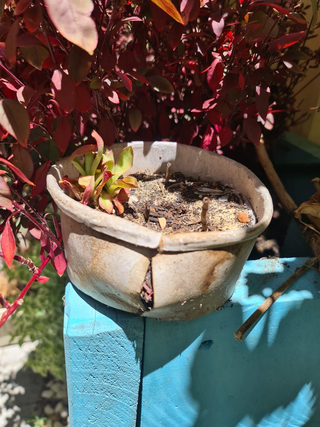 A year on and this 'compostable' plastic lined soup bowl is still getting by as a planter.