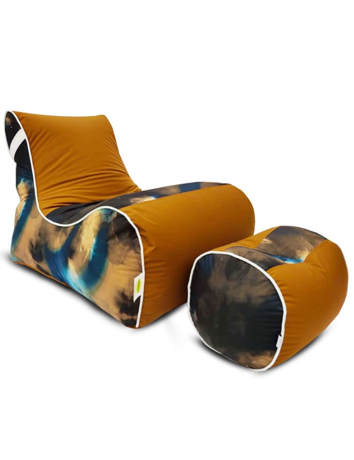 This Digital printed large lounger bean bag with stool for adults includes sensory deprivation therapy which can help in reducing stress. It contains responsive high-density beads and weighs only 12 pounds. It has a notably soft and stretchy shell nature which gives a flexible, supportive, and perfect balance for your body weight and preferred position.