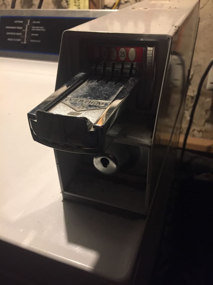 Just before you head out the door and down to the laundromat, you suddenly remember that you'll need to grab some coins. Why? Because you won't be using the fancy new card-reader machines, where you top-up your card online, no, you’ll instead find the old-school coin-op machines, like the picture I have below. It’s the Wild West.