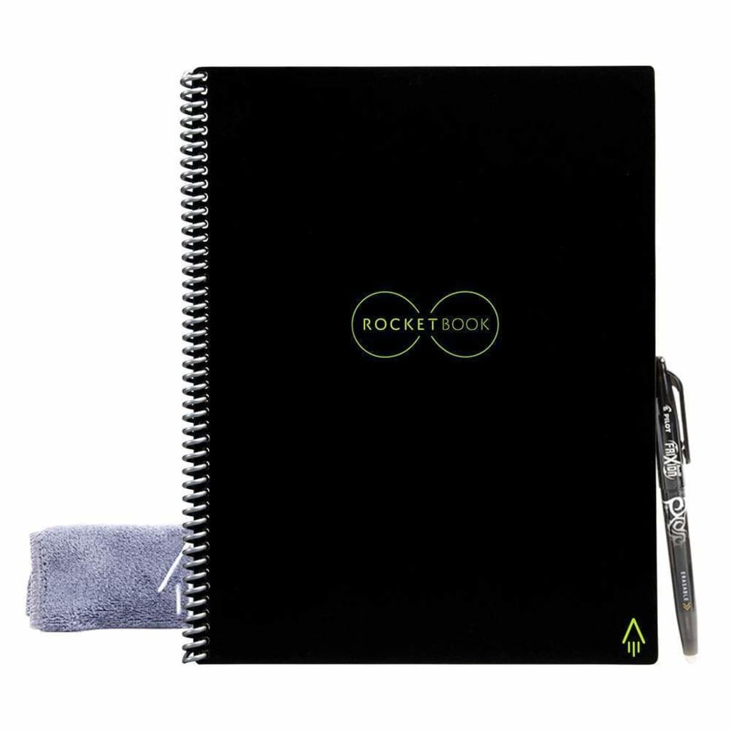 As you can see on this TikTok video, it is a notebook designed for classrooms, offices or even planning. It comes with a small cloth and a special pen. On the first page it has 7 different symbols you can use to assign anything you write/draw into different folders on the cloud, using their app. At the bottom of each page you can select which of the symbols your piece of work is assigned to before scanning it on the Rocketbook app. The pages can then be erased by dampening the rag and wiping them clear.