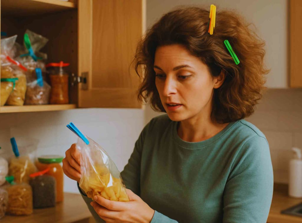 This time, it was the kitchen’s turn. Bags neatly sealed with colorful clips, stacked packages, jars moved around, perhaps a few added labels. At first glance, everything seemed to be in place.