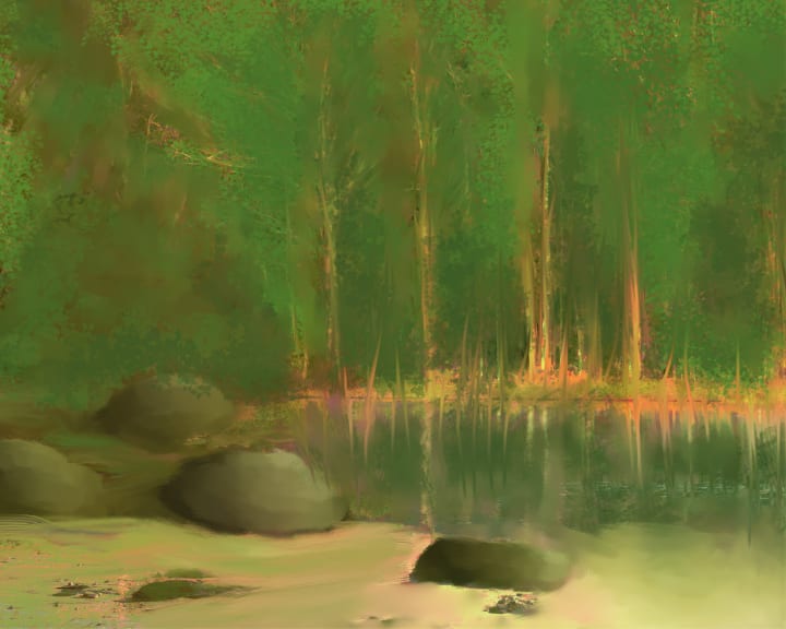 She whispers, “These humans cannot see that the two lakes want to connect and flow into one river.” She evaporates and leaves, and lets the humans be.