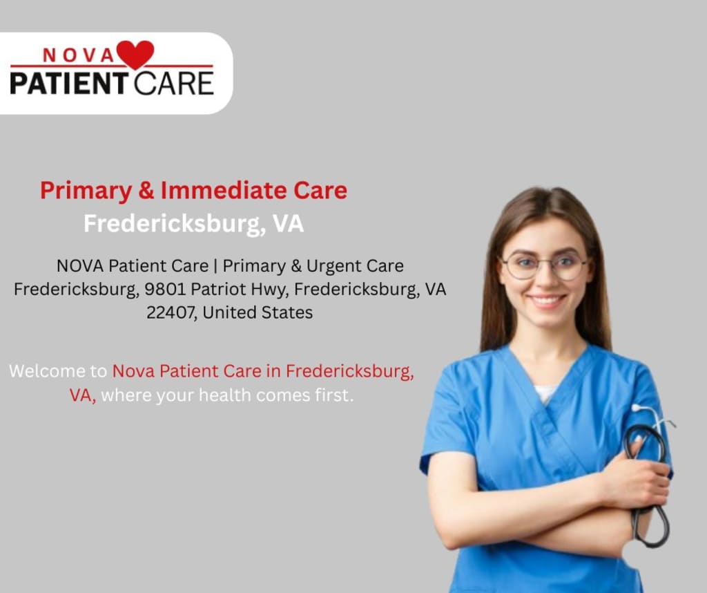 If you're searching for “urgent care near me in Fredericksburg, VA” or “walk-in primary care clinic in Fredericksburg,” Nova Patient Care is your local solution. Whether it’s a cough, cut, or chronic condition, you deserve care that’s convenient, compassionate, and comprehensive.