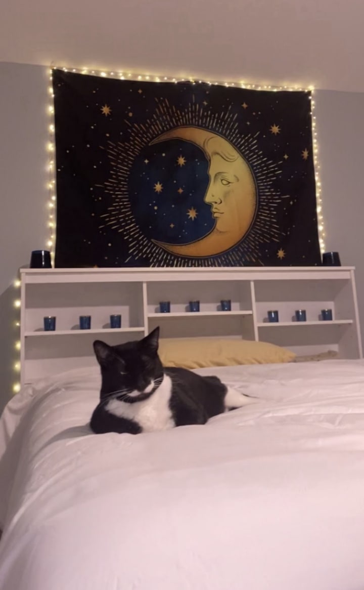 Almost everything in this picture is thrifted, but I decided I wanted a new duvet insert, and let me tell you, the Original Lull Duvet from Lull is a game changer. It is the perfect weight to keep me warm but not get overheated, and no matter how much my cat kneads at it, it doesn’t clump like other duvet inserts I have had. With my room so clean and my bed so comfortable, my mind finally calms down enough to sleep at night.