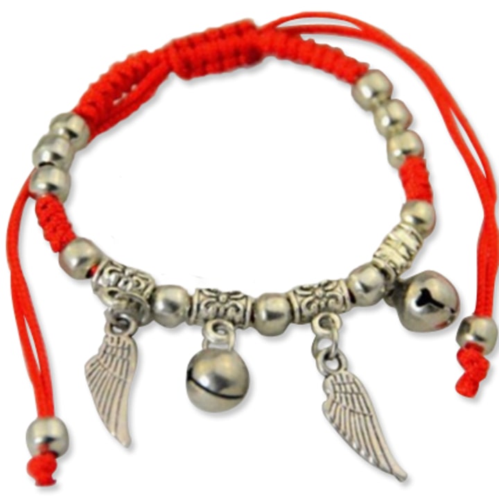 The Red String Angel bracelet is a beautiful beaded accessory with wings and bells for charms. It is meant to send the wearer a guardian angel whenever he or she needs guidance.