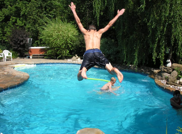 I can still picture it. One of our teens, about to leap off the slate diving rock into the backyard pool. A split second after the leap, the midair yelp: "No turning ba-ack!"… and then the splash, the ripples, the pause and the re-surface. Wet!