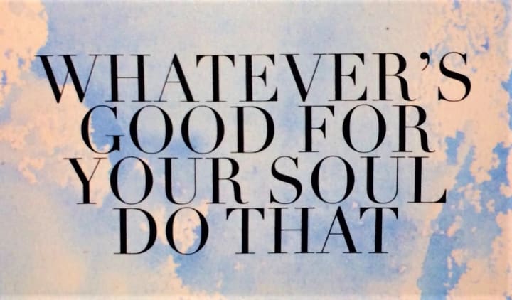 He sits with this, pondering, and then he gestures to a canvas poster on my office wall. "Whatever’s good for your soul, do that."