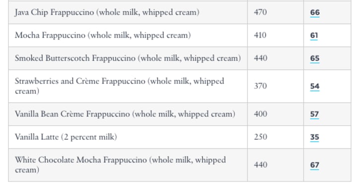 Before I drop the harsh truth on you, let's look at what default ingredients go into some of our favorite beverages.