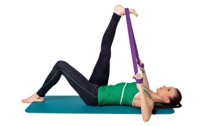 This is the safest method of stretching the hamstrings. Other common methods such as bending over or touching your toes while sitting can cause more harm to the low back.