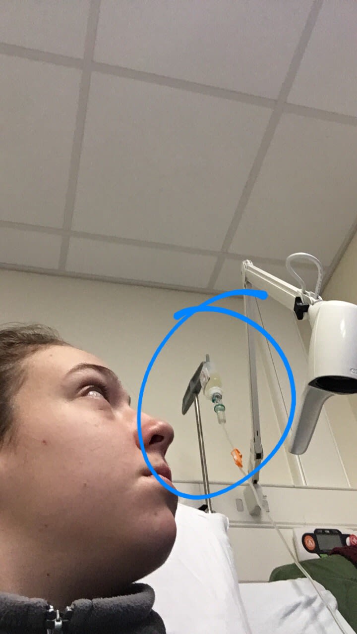 Well it turned out that I had contracted an infection, which had caused bleeding and the clot. I began to throw up blood and the doctors started to get very worried. They had put a cannula in my arm and started feeding me antibiotics (non-penicillin, as I'm allergic) and morphine straight away. The morphine helped the pain, stopped me worrying, and made me feel super wavy... Yeah the morphine would have to be the best part of this experience. I also was not able to eat or drink just in case the doctors had to operate again. I was sent to a bed and was monitored all day. Every two hours I gargled Hydrogen Peroxide to try and dislodge and seal the blood clot.