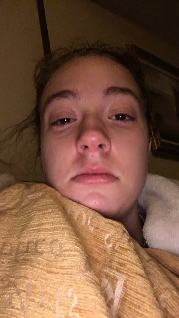 When my mum and dad woke up, they came downstairs to check I was okay. I said to mum I felt I could feel the scabs peeling off and she had a look in my throat. She looked shocked and I panicked and I, of course, asked what it was. She didn't tell me how bad it was, but she had seen a huge blood clot on my right tonsil. I started to feel dizzy and sick and mum rushed me to A&E to have it checked out.