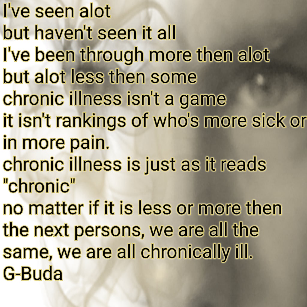 Invisible diseases play havoc on the mind of the holder. You have high anxiety, trying to know how you feel, what you feel, when you feel, 24 hours a day. Then the unknowing of if, when, how, of what our diseases next destroying move will be.