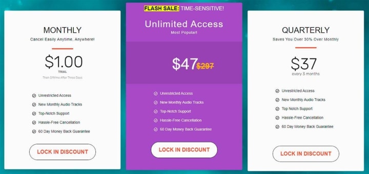 Once you have accepted the cookies, you can check out the plans. There are three plans for people who want to benefit from the My Personal Frequency program. These plans offer monthly, quarterly, and lifetime payment options. You will enjoy a huge discount if you go for a one-time purchase.