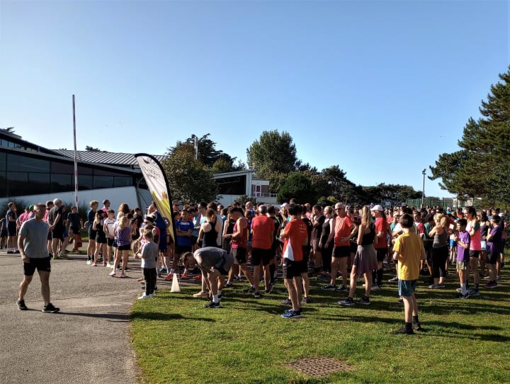 Even allowing for all that, though, it was a surprise to see how deeply tourists are embedded into Jersey. Our run director, Sam, came from the Isle of Wight, fresh from following the recent Island Games on Guernsey. The first-time briefing was delivered by another visitor, Jodie, more often found running in the northeast of Scotland. And, on a summer Saturday, significant numbers of holidaymakers who come to Jersey for a sunny staycation also find their way to Les Quennevais Sports Centre. It all helps to secure a turn-out of 300+ - not bad on an island with a population of barely 100,000.
