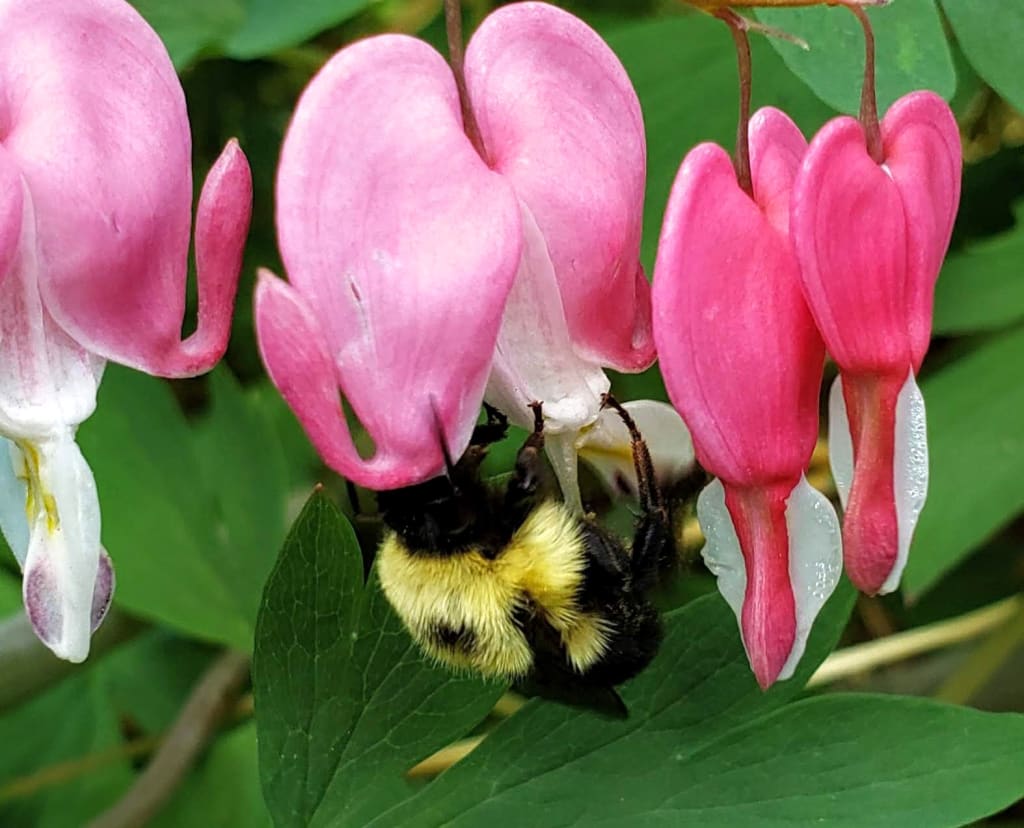 The wonders that so easily get lost in the shuffle of our busy lives became re-ingrained in my awareness, as pure and vibrant as they’ve always been - when I’ve taken the time to pay attention. The bees and mosquitos, crickets and butterflies trigger memories and fantasies and now I can follow along, wandering deeper into thought and Self and pure experience. I can creep slowly up to a bumble bee working diligently on stripping the bleeding hearts of their pollen and ensuring another generation of their beautiful host. I can note the growth patterns of the reishi mushrooms that push forth from the hemlock trees and watch the crazy, zooming, twirling play of the squirrels sprinting around the back yard and chattering in full voice.
