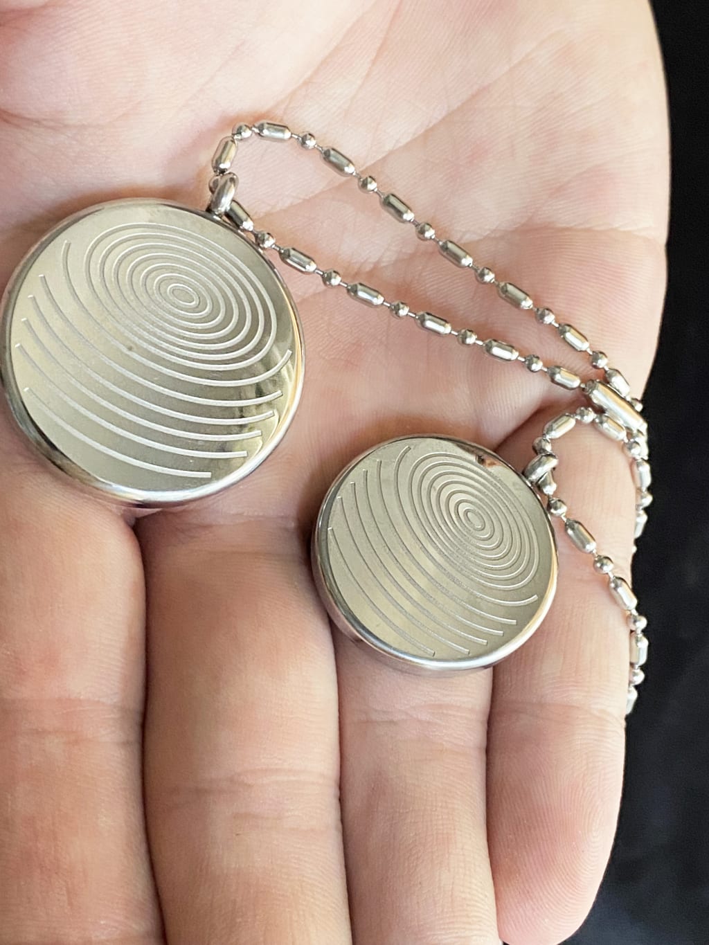 When it finally arrived, she carefully unwrapped the package and put the pendant on. It was a sleek and modern design, with a silver chain and a small black pendant that glimmered in the light.