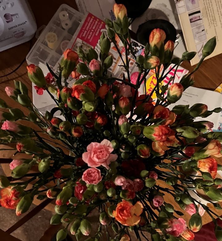 I am easily won over by flowers, particularly Carnations, whether they are pink, red, blue, or even a rainbow of colours.