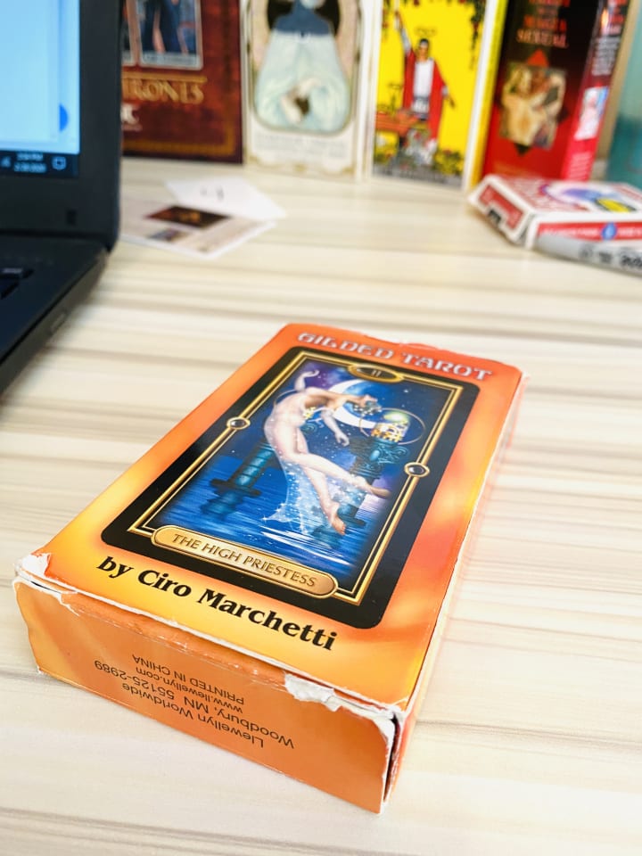 I shuffled my spread using “The Guilded Tarot Deck” book by Ciro Marchetti.
