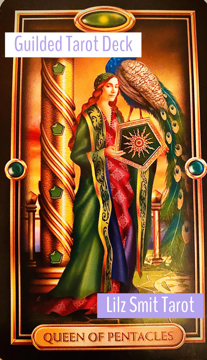 Every time I see this card in this deck I’m immediately drawn to the Peacock 🦚 that stands behind this wonderfully dressed woman holding her pentacle.