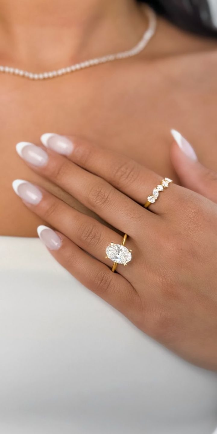 It pairs effortlessly with diamond band rings, making the diamond center stone pop with its clear, bright sheen. If you’re not ready to commit to platinum’s price but still want something high-quality and stylish, white gold could be your perfect match.