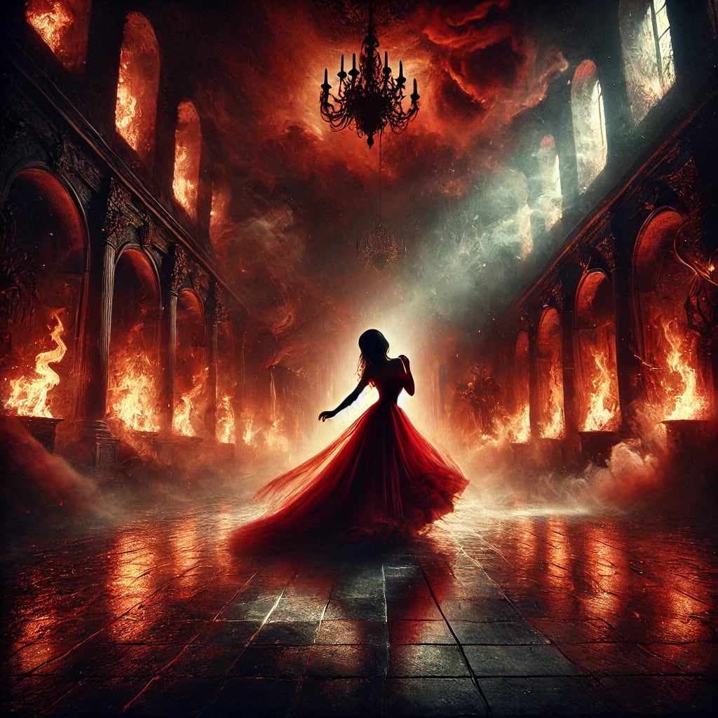 ...The ballroom was alive with golden lights, music like silk wrapping around the dancers, and chandeliers that sparkled brightly, as if the stars themselves had gathered to watch. But the moment she touched you, the room began to vanish. It was only the two of you, lost in that dance, moving through smoke and mirrors, circling closer and closer to a flame you couldn’t outrun.