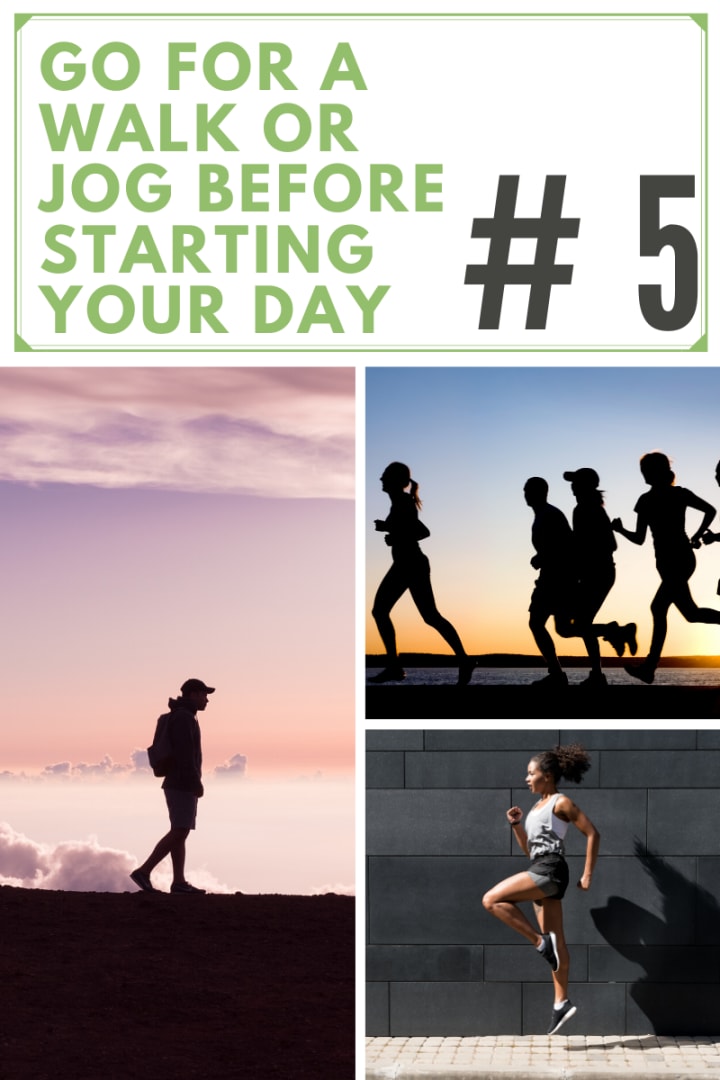 Walking and jogging can help increase energy and jump start your metabolism. When done before work or daily activities it is a very good way to keep your body and mind alert and working properly throughout the day.